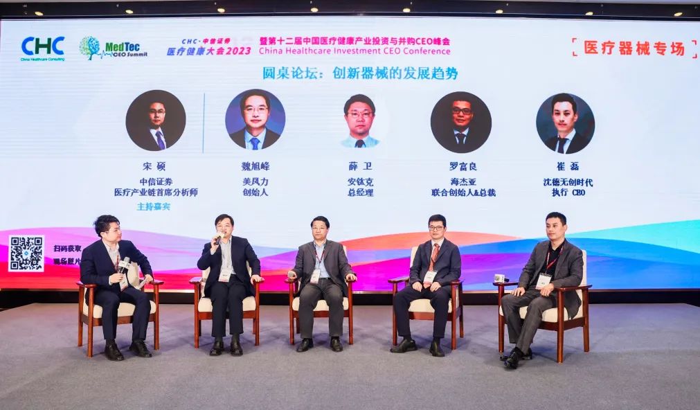 4月26-27日,2023CHC·中信證券醫(yī)療健康大會暨第十二屆中國醫(yī)療健康產(chǎn)業(yè)投資并購CEO峰會在山東濟南拉開帷幕。沈德無創(chuàng)時代執(zhí)行CEO崔磊受邀出席本次大會,并參加創(chuàng)新器械發(fā)展趨勢圓桌論壇。
